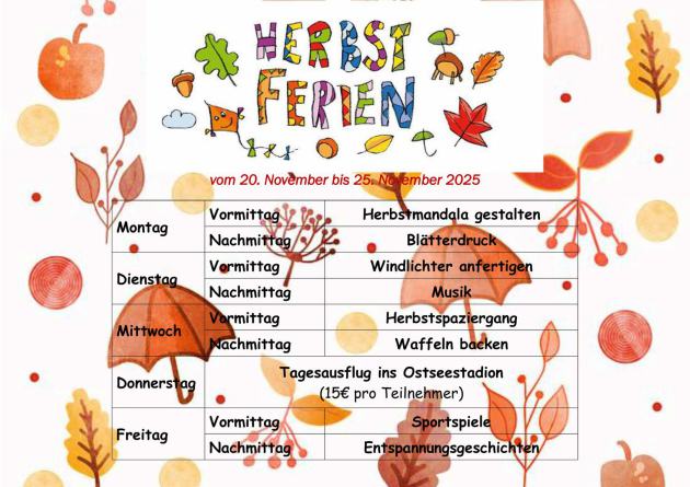 für die Organisation der Kinderbetreuung in den Herbstferien und den beweglichen Ferientagen sind wir auf Ihre genaue Anmeldung angewiesen.