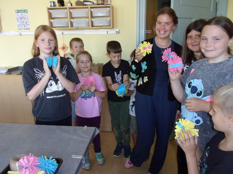 Am Mittwoch, dem 24. September 2025 verwandelte sich der Hort in ein buntes Spielparadies für Jung und Alt. Nach einer herzlichen Begrüßung durch unseren Hortleiter, Herrn Kloß, eröffnete eine Tanzgruppe das Fest schwungvoll mit einer tollen Aufführung. Danach konnten die Besucher an verschiedenen Stationen ihr Geschick unter Beweis stellen - ob beim Bogenschießen, Schubkarrenrennen oder beim lustigen "Pömpeln". Die Kinder konnten auch Fangbecher basteln, ein Feuer löschen und sich die Hände bunt bemalen lassen.