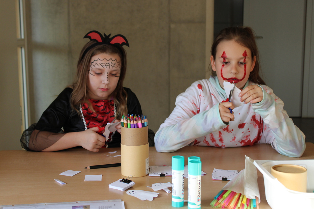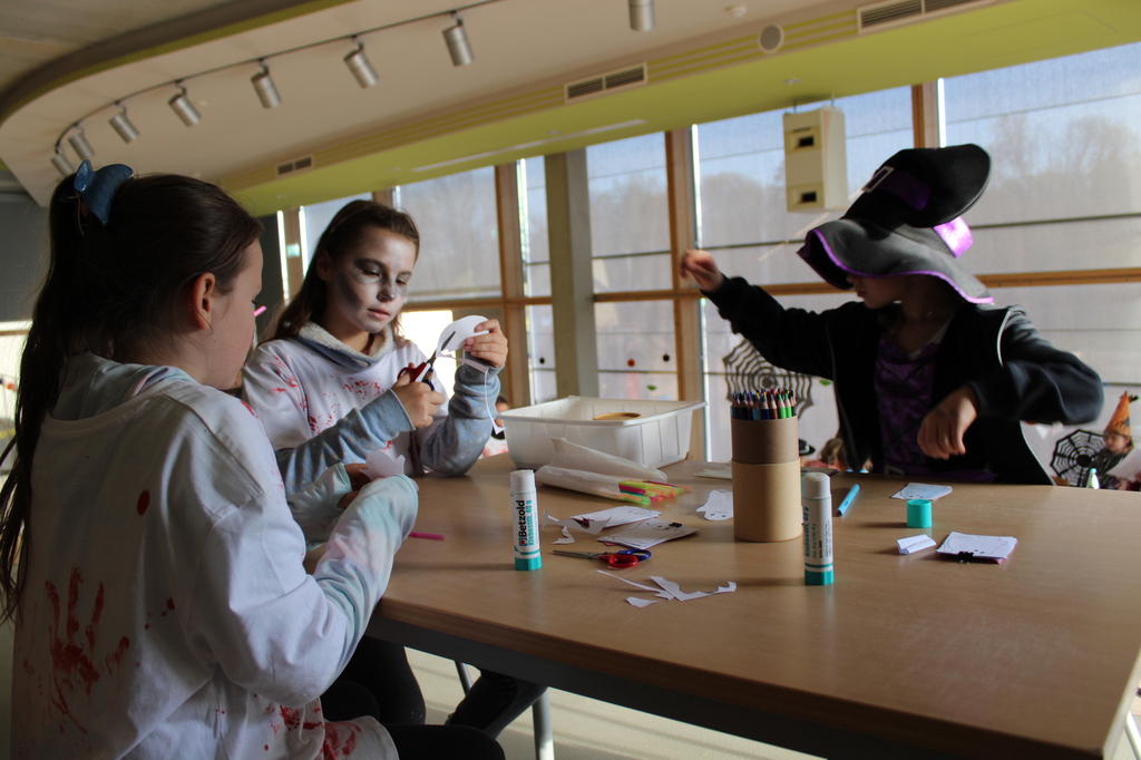 Zur Eröffnung führten die Kinder der 4. Klassen einen Halloween-Tanz auf, der für begeisterte Stimmung sorgte. Danach konnten alle an verschiedenen Stationen aktiv werden und ihrer Kreativität freien Lauf lassen. Beim "Zombiewurf - das Auge fliegt mit" war Zielsicherheit gefragt, an der Bastelstation wurden kleine Geister gezaubert und beim Kürbisschnitzen entstanden grinsende und gruselige Kunstwerke.