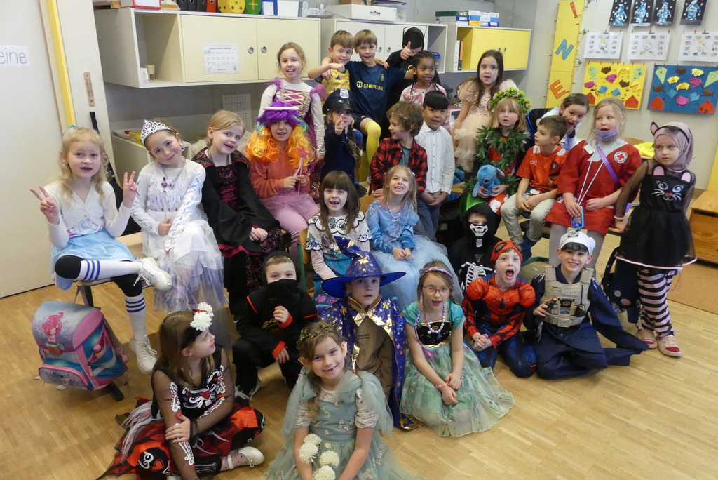 Prinzessinnen und Hexen sowie Fußballer und andere bunte Kostüme. Um 14:00 Uhr startete anschließend das gemeinsame Faschingsfest für alle Hortgruppen in der Sporthalle.