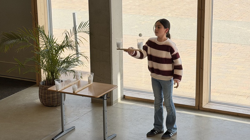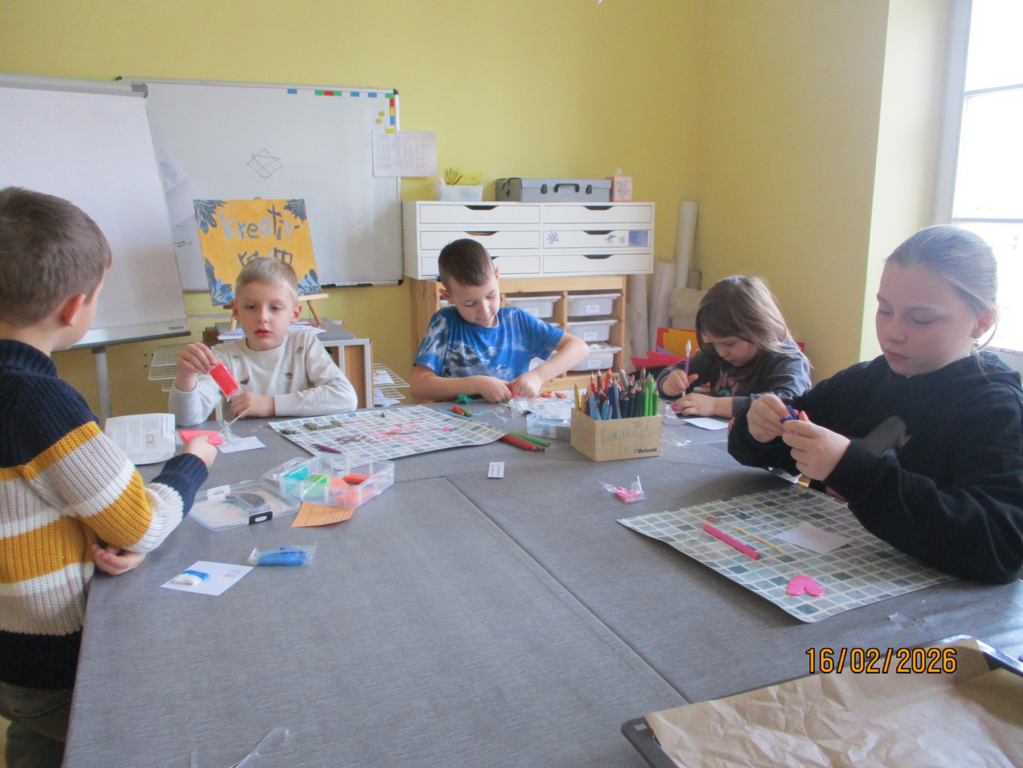 Die vorbereiteten Stationen sorgten schnell dafür, dass sich der gesamte Hort in ein buntes Schneetreiben verwandelte. Besonders beliebt war die Schneekugel-Werkstatt, in der die Kinder mit Glitzer und kleinen Figuren ihre eigenen Mini-Winterwelten erschufen. Immer wieder sah man neugierige Gesichter, die ihre frisch geschüttelten Kugeln prüfend betrachteten und begeistert lächelten.