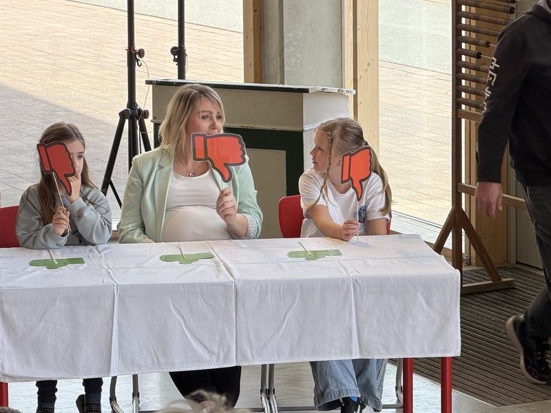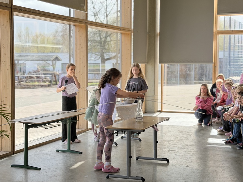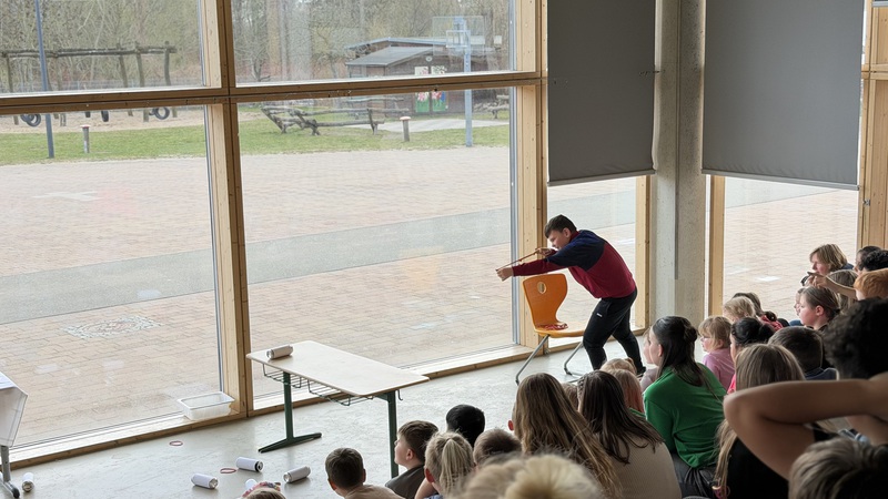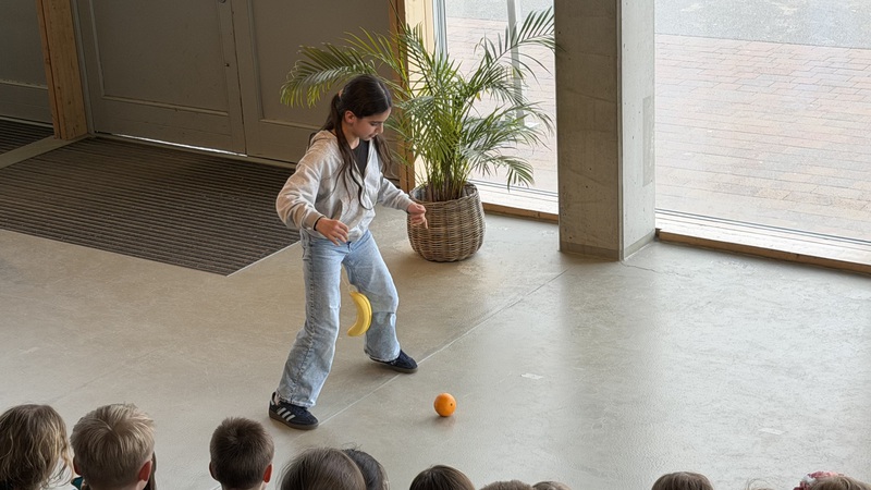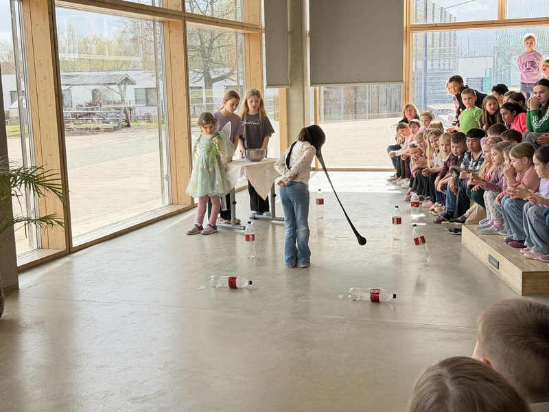 Die Kinder verfolgten das Geschehen aufmerksam, reagierten mit Lachen, Staunen und Applaus und wurden immer wieder aktiv in das Spiel einbezogen. So entstand eine lebendige Atmosphäre, in der Theater nicht nur zugeschaut, sondern gemeinsam erlebt wurde.