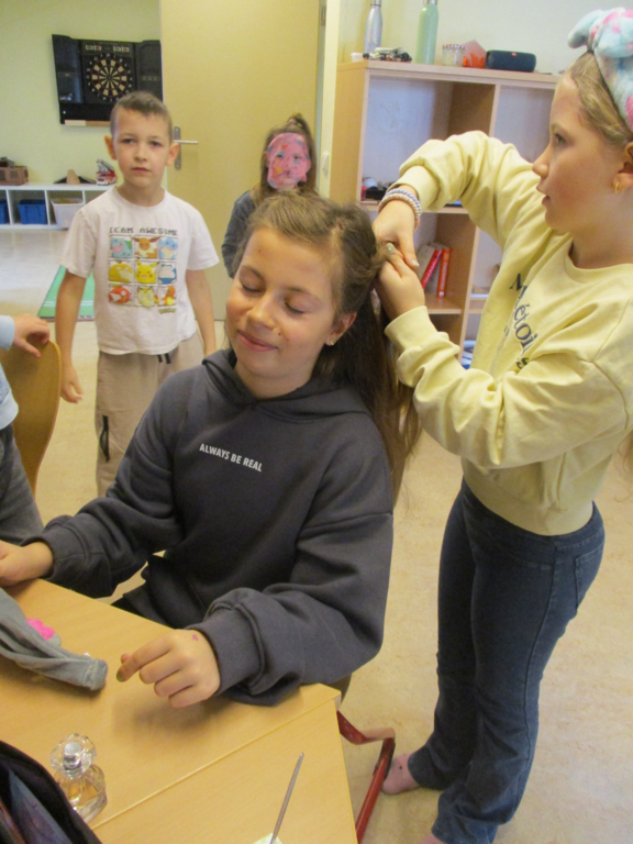 Gegen 13:30 Uhr gingen die Hortkinder gemeinsam mit den Erziehern zum Umziehen in ihre eigenen, kunterbunten Faschingskostüme. Dabei entstanden Piraten, Polizisten, Feen, Disney-Figuren,