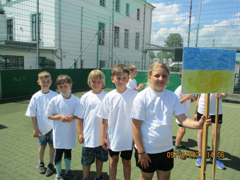 Mit lautem Jubel und Getröte zogen wir Kinder vom Hort am Schloßplatz am 5. Juni durch Bützow zum Sportplatz am Wall. Dort fanden nämlich die Finalrunden unserer Mini-EM 2024 statt. Jeweils 4 Spieler waren auf die Mannschaften Polen, Schweiz, England, Italien, Slowakei und Tschechien aufgeteilt. Mit der passenden Landesfahne zogen die Spieler vorneweg und wir Fans hinterher.