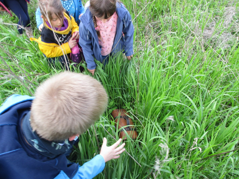 Eine Pfeiljagd führte die Kinder der Stufe 3 zum neuen Spielplatz an der Pustholer Chaussee. Leider war dort nur wenig Zeit zum Spielen, weil sie ja auch noch an den Rückweg denken mussten. Aber die Pfeiljagd an sich hat ihnen ja schon viel Spaß gemacht.
