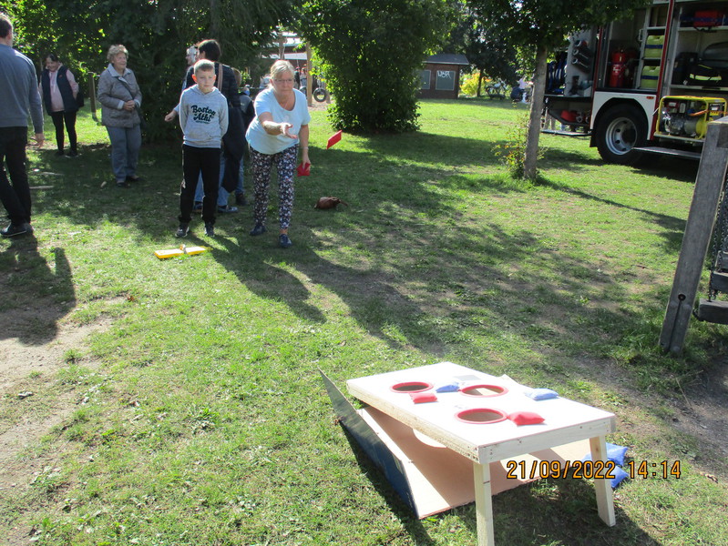 Dann ging es aber endlich an die Stationen. Immer wenn wir mit unseren Großeltern eine Station besucht hatten, konnten wir das auf unserem Laufzettel abhaken lassen. Bei Riesenmikado, Minigolf, Darts, Armbrustschießen, Sackhüpfen, Fangbecher basteln u.v.m. hatten Großeltern und Enkelkinder viel Spaß. Die Abteilung Badminton vom TSV Bützow, die Bützower Feuerwehr und unser Essenanbieter „Tischlein deck dich“ sorgten mit ihren Stationen für ganz besondere Erlebnisse.