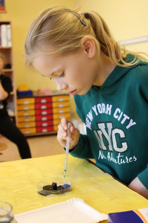 Bei uns im Hort forschen und experimentieren wir sehr gerne. Wir haben auch eine ganz tolle Experimentierwerkstatt hier. Seit einigen Jahren sind wir sogar „Haus der kleinen Forscher“.